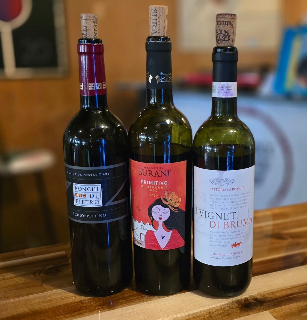 The tasting this week will feature wine from Southern Italy.  Come join us as Theresa leads us through an Italian tasting!