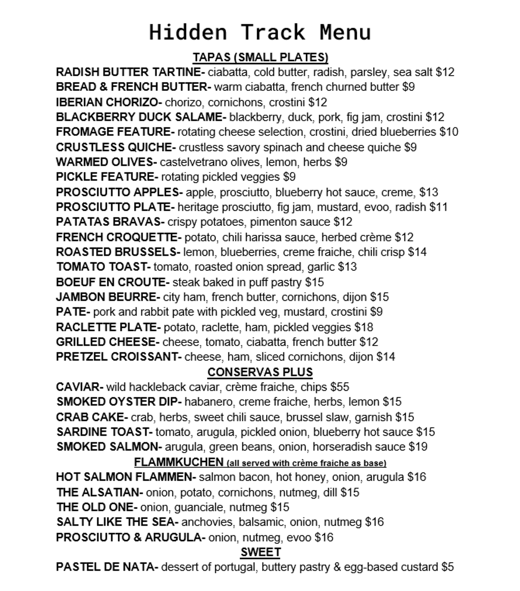 Check out the latest menu available at Hidden Track.